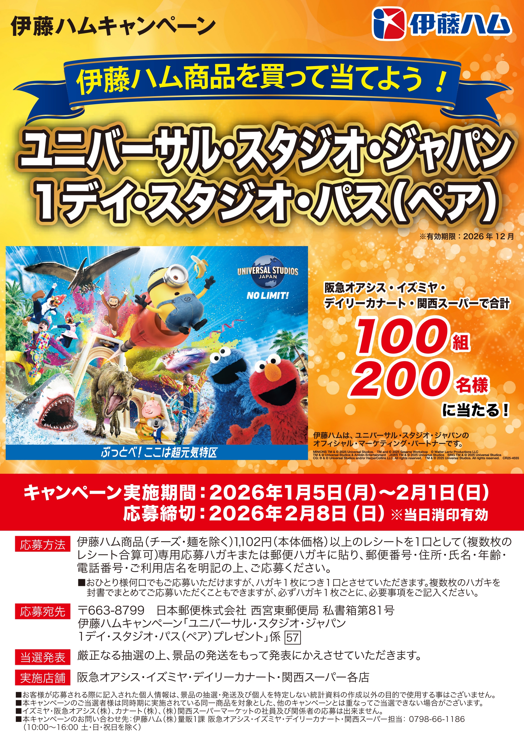 伊藤ハム「ユニバーサル・スタジオ・ジャパン 1デイ・スタジオ・パス(ペア) プレゼント」キャンペーン