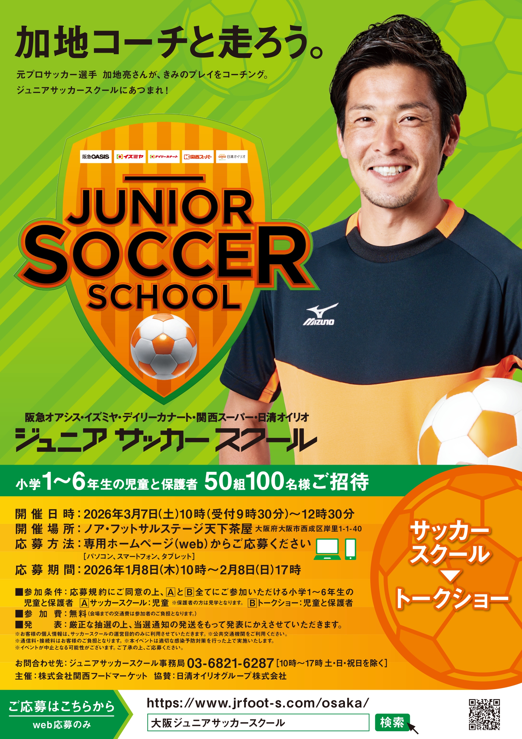 • 抽選で50組100名様ご招待!加地コーチと走ろう。ジュニアサッカースクール